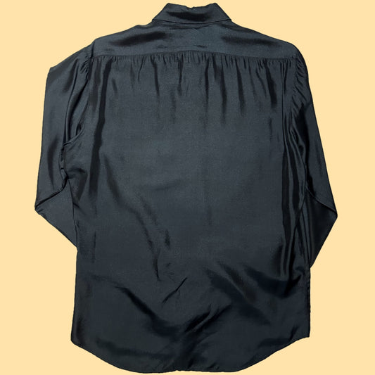 Vintage EMS 100% Silk Dress Shirt - Medium - Black