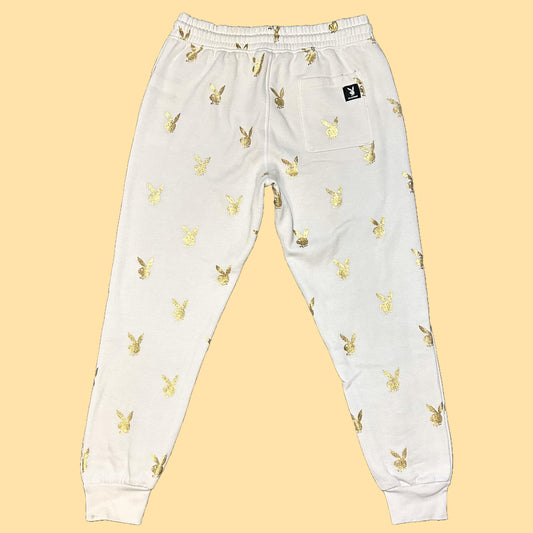 Playboy Gold Bunny Repeat Print Sweatpants - Large - White