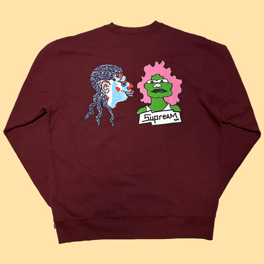 Supreme Gonz Heads Faces Crewneck Sweater (Fall/Winter 2017) - XL - Maroon